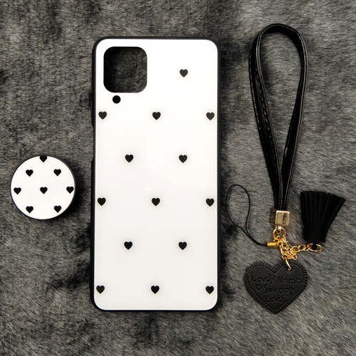 کاور مدل قلب مناسب برای گوشی موبایل سامسونگ Galaxy A12 به همراه بند و پایه نگهدارنده