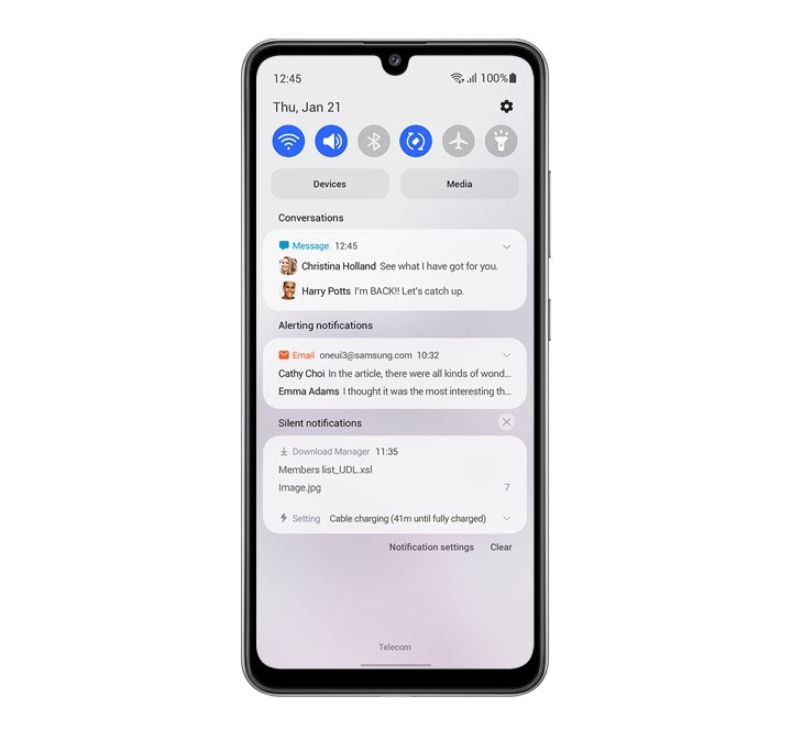 گوشی موبایل Galaxy A32 با رم 6 گیگابایتی و حافظه داخلی 128گیگابایت روانه بازار شده است. این محصول دارای صفحهنمایش سوپر امولد است و ظاهر زیبایی دارد. سامسونگ تلاش کرده است حاشیه را در این تولید جدید خود تا حد امکان کم کند. این گوشی قاب پشتی از جنس پلاستیک دارد و قاب جلویی آن را شیشه پوشانده که البته جلوهی زیبایی به گوشی داده است. این محصول سامسونگ با نسخه 11 از سیستمعامل اندروید روانه بازار شده است تا از هر نظر گوشی مدرن بهحساب بیاید. صفحهنمایش استفادهشده در این گوشی 6.4 اینچی است که با استفاده از پنل Super AMOLED تصاویر شفاف و زندهای را به نمایش میگذارد. این صفحهنمایش در هر اینچ 411 پیکسل را نشان میدهد. تراشهی این محصول، Mediatek Helio G80 از تراشههای 12 نانومتری شرکت مدیاتک است که به همراه 6 گیگابایت رم عرضه میشود. تراشهی گرافیکی Mali-G52 MC2 هم برای پخش ویدئو و بازی مناسب است. این نسخه از گوشی با حافظه 128گیگابایتی عرضه شده است و با استفاده از یک کارت حافظهی جانبی قادر خواهید بود حافظه داخلی را باز هم افزایش دهید. دوربین اصلی A32 سنسور 64 مگاپیکسلی دارد و از نوع عریض (Wide) است. یک سنسور 8 مگاپیکسلی و دو سنسور 5 مگاپیکسلی دیگر هم در کنار این دوربین اصلی مجموعه دوربینهای قاب پشتی A32 را تشکیل دادهاند. دوربین سلفی 20 مگاپیکسلی هم در قاب جلویی این گوشی به کار گرفته شده است. باتری 5000 میلیآمپرساعتی، پشتیبانی از فناوری شارژ سریع 15 واتی، درگاه USB Type-C و حسگر اثرانگشت هم از دیگر ویژگیهای این تازهوارد است. سامسونگ در ساخت این گوشی از جدیدترین فناوریهای ساخت گوشی استفاده کرده است تا میانردهای با باند ارتباطی مدرن و عمر طولانی باتری روانه بازار کند.