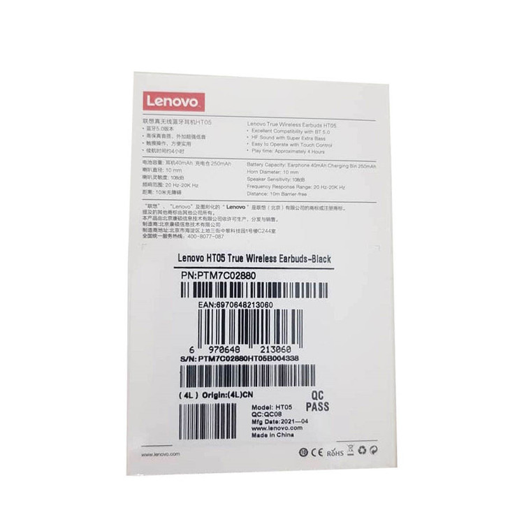هندزفری وایرلس لنوو HT05 از طریق بلوتوث نسخه 5.0 به گوشی موبایل شما وصل می شود. این هدفون لنوو دارای طراحی زیبا و ارگونومی می باشد که به راحتی در گوش قرار می گیرد و اذیت نخواهید شد. این هندزفری به راحتی در گوش شما فیکس می شود و در حین دویدن، طناب زنی و هر ورزش دیگری از گوش شما نخواهد افتاد. باتری کیس شارژ هندزفری وایرلس HT05 لنوو دارای ظرفیت 250 میلی آمپر ساعتی می باشد که ماندگاری نسبتا بالایی دارد و رضایت کاربران را جلب می کند.