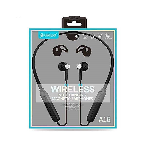 هدفون A16 یکی از مدل های طراحی شرکت Celebrat می باشد. این شرکت به صورت تخصصی در حال تولید و توسعه ی محصولات صوتی از قبیل هدفون و هندزفری می باشد. و با اتکا به دستگاه ها و دانش روز ، تمامی محصولات دارای کیفیت ساخت بالاست و علاوه بر این از آخرین تکنولوژی طراحی های مدارات در آنها استفاده می شود که باعث شده تولیدات این کمپانی به اروپا و آمریکا نیز صادر شوند. مدل A16 به صورت دورگردنی طراحی شده است و ارگونومی بسیار مناسبی دارد. قسمت دورگردنی کاملا نرم و انعطاف پذیر است و می توان آنرا به صورت کامل چرخاند و امکان شکستن آن در طول روز و فعالیت های روزانه و ورزشی وجود ندارد. قسمت های تو گوشی با شکل گوش کاملا سازگاری دارد و در گوش به خوبی جای گیری می کند و فیکس می شود. همچنین درون جعبه ، یک سری پلاستیکی حلزونی وجود دارد که به وسیله آن می توانید با خیال راحت با این هدفون به فعالیت های ورزشی بپردازید و نگران بیرون آمدن آنها از گوشتان نباشد. سری های گوشی مجهز به یک مگنت قوی است که در صورتی که نیاز به استفاده از هدفون ندارید ، می توانید آنها را از گوشتان بیرون آورید و به هم متصل کنید و آویزان کنید. با استفاده از بلوتوث می توانید این هدفون را به تمامی دستگاه های اپلی و اندرویدی و دیگر دستگاه های مجهز به بلوتوث ، متصل کنید و از آن استفاده کنید. شما با این دستگاه علاوه بر گوش دادن به اهنگ توانایی برقراری ارتباط تلفنی را نیز دارا می باشید و می توانید به علت وجود یک میکروفون بسیار قوی و با کیفیت پاسخگوی مکالمات خود نیز باشید. در قسمت دور گردنی ، 3 دکمه وجود دارد که می توانید از آنها برای مصارف زیر ، استفاده نمایید: 1. پاسخ / قطع مکالمات تلفنی 2. کم / زیاد کردن صدا 3. انتخاب موزیک قبلی / بعدی با هر بار شارژ کامل هدفون Celebrat A16 می توانید 5 تا 6 ساعت برای مکالمه و یا گوش دادن به موزیک از آن استفاده نمایید و همچنین دستگاه می تواند شارژ خود را تا 320 ساعت به صورت Standby حفظ کند. بعد از اتصال دستگاه به موبایلتان می توانید میزان شارژ هدفونتان را در گوشی موبایلتان ببینید و بررسی نمایید.