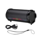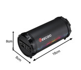 مشاهده محصولات مرتبطبدنه زیبای اسپیکر بلوتوث S41 بیکارو به شکل استوانه طراحی شده است جنس بدنه اسپیکر بی سیم S41 از پلاستیک فشره است و با کیفیت بسیار بالایی در کنار هم مونتاژ شده است. دو قاب پلاستیکی کمرنگ درایور اسپیکر را در بر گرفته اند و پوشش توری فلزی به کار رفته در دو طرف آن ها از آسیب فیزیکی به اجزای حساس داخلی جلوگیری می کند.پنل کنترلی بلندگوی بلوتوث s41 شامل 4 دکمه برای انتخاب وضعیت پخش، توقف آهنگ و جلو و عقب بردن قطعه در حال پخش است و تنظیم حجم صدا نیز با کمک دو دکمه اخیر انجام می شود. روشن و خاموش کردن دستگاه از طریق یک کلید کشویی صورت می پذیرد و در کنار آن می توان پورت USB، شیار کارت حافظه، جک 3.5 میلی متری AUX و کانکتور microUSB برای شارژ را مشاهده کرد. هنگام زدن اسپیکر بلوتوثs41 بیکارو به شارژ، یک LED کوچک در زیر کانکتور آن روشن می شود تا شما را در جریان روند تکمیل شارژ قرار دهد.