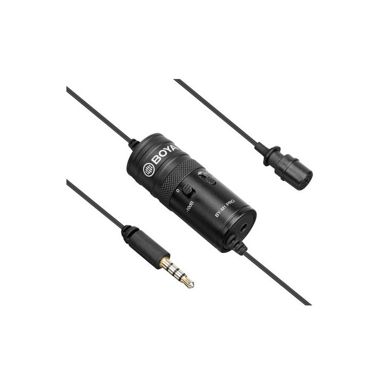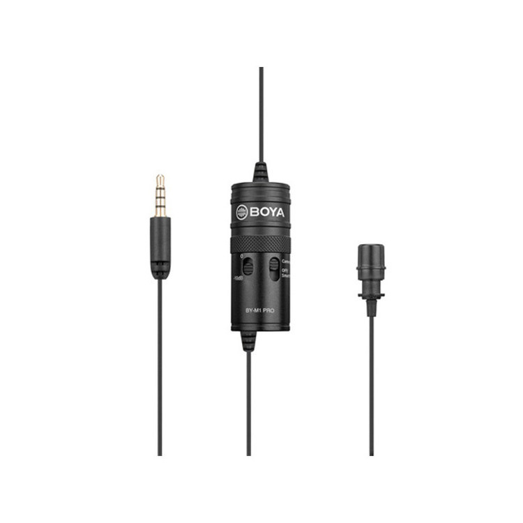 Boya BY-M1 Pro یک میکروفون یقه ای با امکان اتصال به گوشی های هوشمند با جک 3.5 میلی متری ، دوربین های عکاسی و فیلمبرداری ، رکوردرها ، تبلت و کامپیوتر می باشد. بویا M1 Pro از نوع میکروفون های خازنی با کیفیت صدای عالی است که مناسب برای ساخت کلیپ های آموزشی و انواع ویدئوهایی که نیاز به حذف صدای محیط می باشد مورد استفاده قرار می گیرد. مزیت Boya BY-M1 Pro به مدل قبلی یعنی BY-M1 خروجی هدفون می باشد که اجازه شنیدن صدای زنده را به شما می دهد و همچنین دکمه تنظیم حساسیت در این مدل تعبیه شده است که در حالت 0 و 10db- قابل تنظیم است. ابر موجود روی این میکروفون در کنار داشتن صدایی شفاف تر وظیفه محافظت از میکروفون را هم بر عهده دارد. این محصول با داشتن سیم 6 متری خیال شما را بابت آزادی در حرکت راحت می کند