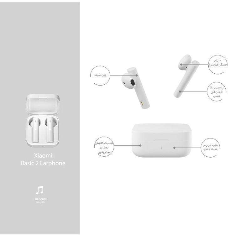 شیائومی یکی از پیشروان فناوری Tian-Giants و همچنین یکی از بهترین تولید کنندگان تلفنهای هوشمند در جهان است. این شرکت نه تنها دستگاههای پرچمدار رده بالایی را تولید میکند بلکه دستگاههای میان رده و کم مصرفی نیز میسازد تا هرکسی بتواند از آنها استفاده نماید. این شرکت ادعا میکند که آنها محصولات باکیفیتی را با قیمت بسیار صادقانه تولید میکنند. شیائومی همچنین دستگاههای پوشیدنی بی سیم تولید میکند که بسیار مشهور، قابل اعتماد و مقرون به صرفه هستند. وقتی صحبت از بخش صوتی است، این شرکت هدفونهای سیمی، هدفونهای بی سیم واقعی، هدفونهای بلوتوث و بلندگوهای بلوتوث را تولید میکند. یکی از محصولات این شرکت، هدفون Earphone 2 Basic است. هدفون Earphone 2 Basic ممکن است مقرون به صرفه ترین هدفون TWS است که تاکنون ساخته شده است. اما اگر بین هدفون Realme Buds Q و Mi TWS است، بهتر است Realme Buds را انتخاب کنید. این هدست، از دیافراگمهای پویا 14.2 میلیمتر برخوردار است. طراحی بسیار سادهای دارد و نوک این هدفون به هدفونهای اپل شباهت دارد. هدفون TWS از رمزگذار صوتی AAC پشتیبانی میکند که باعث بهبود بسیاری در وضوح صدا میشود. مطابق ادعای این شرکت، دستگاه از کاهش نویز با استفاده از میکروفون اضافی دستگاه پشتیبانی میکند. دستگاه دارای بلوتوث 5.0 است که به اتصال سریعتر کمک میکند. ایرفونها دارای ویژگیهای کنترل لمسی هستند که بسیار استاندارد است. تشخیص هوشمند مطمئناً یک ویژگی کاربردی است. در واقع این هدفون به طور خودکار هنگام پخش موسیقی با برداشتن از داخل گوش شما متوقف میشود و هنگام بازگرداندن آن دوباره موسیقی را از سر میگیرد. عمر باتری ایرفونها 5 ساعت است، سپس میتوانید آنها را در کیس شارژ قرار داده تا دوباره شارژ شود. به صورت ترکیبی، طول عمر باتری حداکثر 20 ساعت است. کیس شارژ از طریق USB-C شارژ میشود، بنابراین میتوانید از شارژر تلفن خود استفاده کنید.