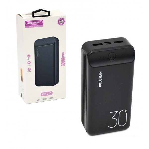 اگر شما هم از آن دسته افرادی هستید که در طول روز با معضل تمام شدن شارژ باتری گوشی موبایل، تبلت یا دیگر وسایل جانبی مانند دوربین دیجیتال و موزیک پلیر دست و پنجه نرم میکنند، بهتر است برای حل آن از یک پاور بانک کمک بگیرید. در مدلKp-013 از سری شارژرهای همراه کلومن یک باتری با ظرفیت 30000 میلیآمپر ساعت بهکار رفته است. این محصول به شکل مستطیل طراحی و تولید شده است. با داشتن با این پاوربانک دیگر هیچ استرسی بابت تمام شدن شارژ باتری گوشی موبایل، تبلت و دیگر دستگاههای از این قبیل در شرایط حساس نخواهید داشت و همیشه باتری دستگاهتان شارژ دارد. همچنین این دستگاه به نمایشگر برای نمایش وضعیت و درصد شارژ دستگاه و یک کلید روشن/خاموش مجهز شده است. همچنین از این کلید برای روشن و خاموش کردن نمایشگر تعبیه شده روی دستگاه نیز میتوان استفاده کرد. روی بدنهی این محصول دو درگاه خروجی USB تعبیه شده است که ولتاژ خروجی یکی از آنها 5 ولت و شدت جریان آن یک آمپر است و ولتاژ خروجی دومین درگاه 5 ولت و شدت جریان آن 2.1 آمپر است این بدین معناست که این پاوربانک قادر است یک گوشی موبایل و یک تبلت را همزمان شارژ کند.. در زمان استفاده از انواع پاوربانکها باید به شدت جریان خروجی آن و دستگاه مورد نظرتان که قرار است باتری آن را شارژ کنید، توجه داشته باشید. برای شارژ باتری انواع گوشیهای موبایل باید شارژر همراه شما حداقل جریان خروجی یک آمپر داشته باشد.