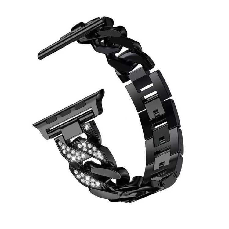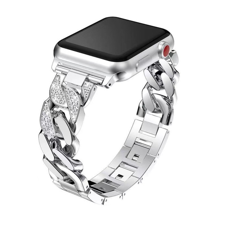 بند اپل واچ کار شده با نگین های ظریف و زیبا در چهار رنگ قابلیت استفاده برای تمامی سری و سایز های مختلف است که زیبایی منحصر به فردی به ساعت شما میبخشد .
