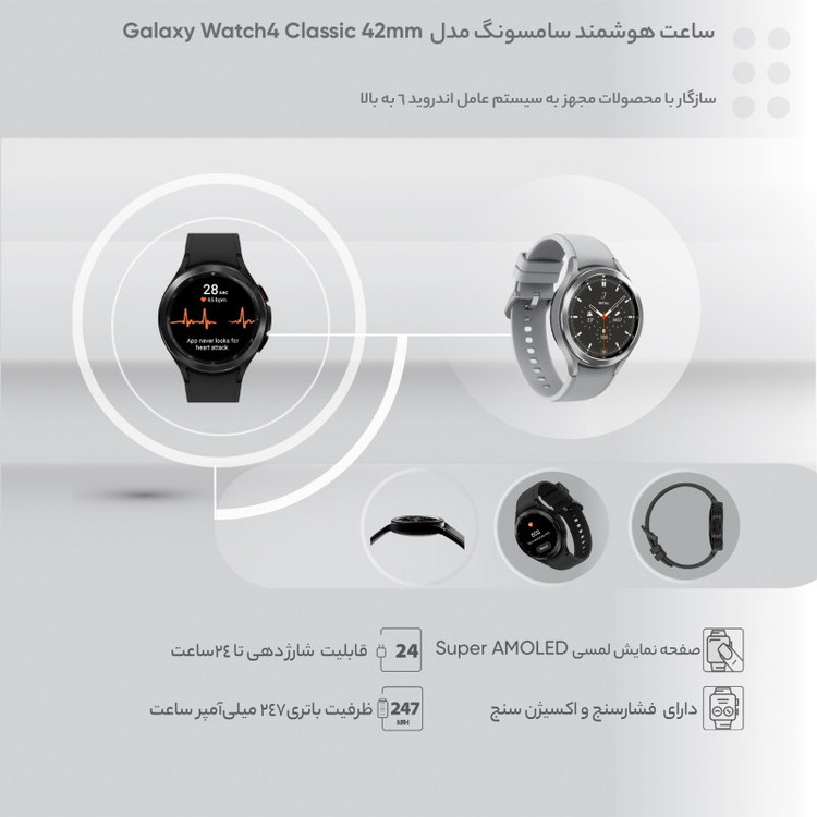 ساعت هوشمند سامسونگ مدل Galaxy Watch4 Classic 42mm بند سیلیکونی